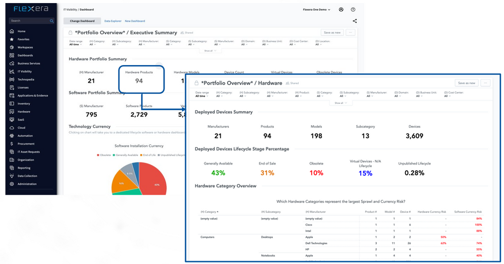 Flexera has launched a new collection of IT Visibility dashboards. These more intuitive, robust dashboards incorporate lessons learned from over 15 proofs of concept (POC) efforts conducted across 2022. The new dashboards replace the prior set of IT Visibility dashboards, but these previous generation dashboards remain available in a Legacy folder.
